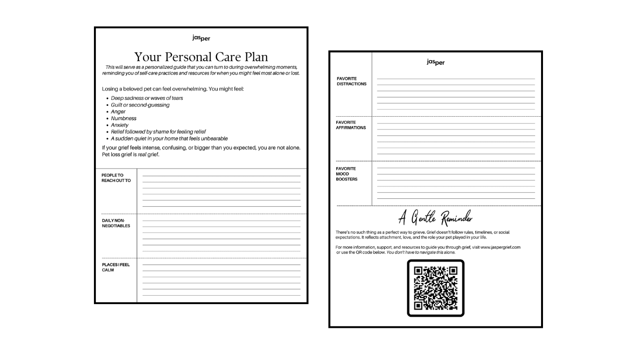 Partner with Jasper to support clients through anticipatory grief, euthanasia decisions, and pet loss. We provide free, vet-ready resources and a trusted support community you can share in seconds.